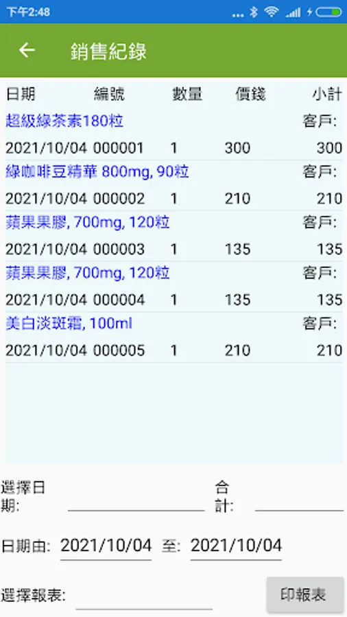 Select date to generate sales report