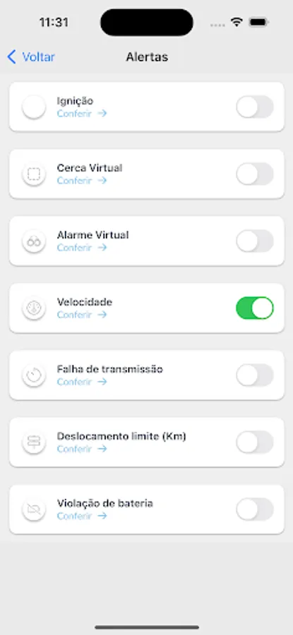 - Several alerts (ignition, virtual fences, virtual alarm, speed, transmission failure, km limit displacement, battery violation.