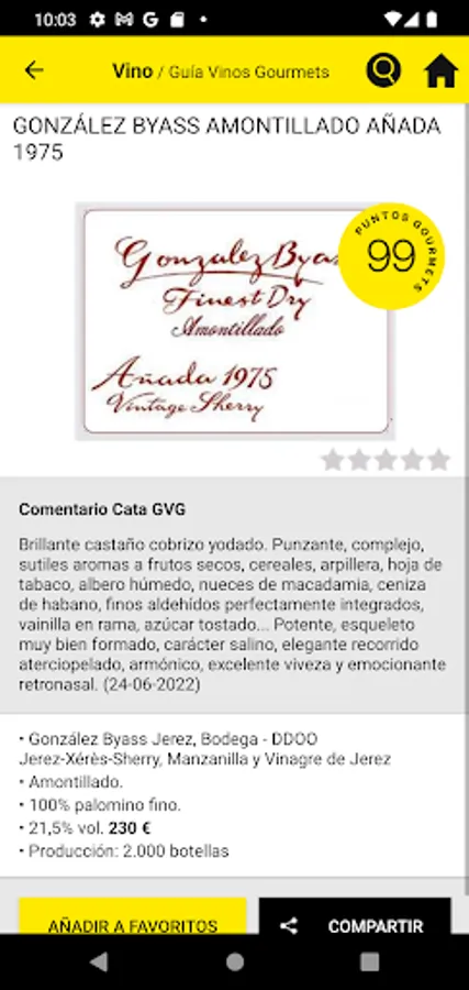 Thanks to this app, you will be able to know the information published in this independent Guide published by Grupo Gourmets. Founded in 1976, it is the first publishing company in Spain specializing in gastronomy, wine and travel. Its headers are the Club de Gourmets magazine (since 1976) and the Gourmet Wine Guide (38 editions-dean of the sector). In November 1986, the Gourmets Group created the Club de Vinos Gourmets and a year later convened, organized and developed the Salón de Gourmets, International Quality Food and Beverage Fair.