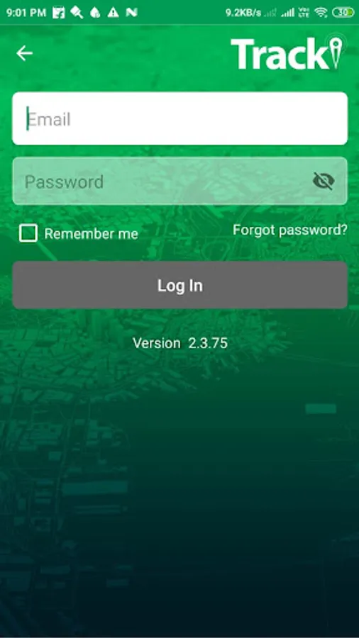 * You can log in to the Tracki app with a user name (your email address) and a password, and you can also sign up and create a new account.