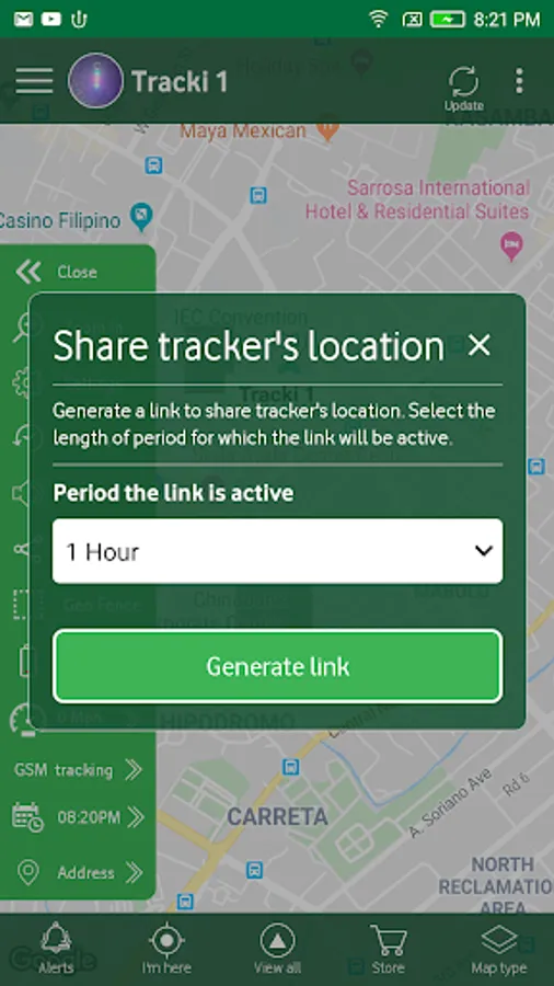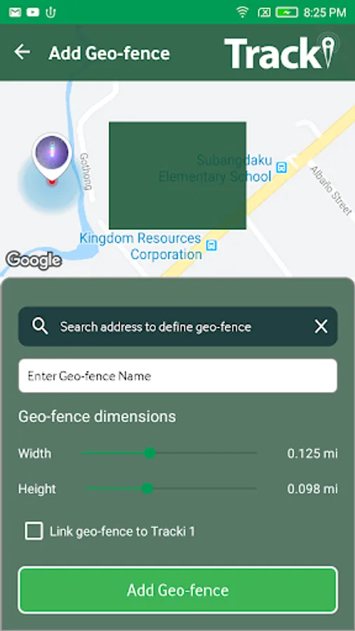 * Set Geo-fences: draw areas on the map that will function as virtual fences that trigger an alarm when the device crosses them.