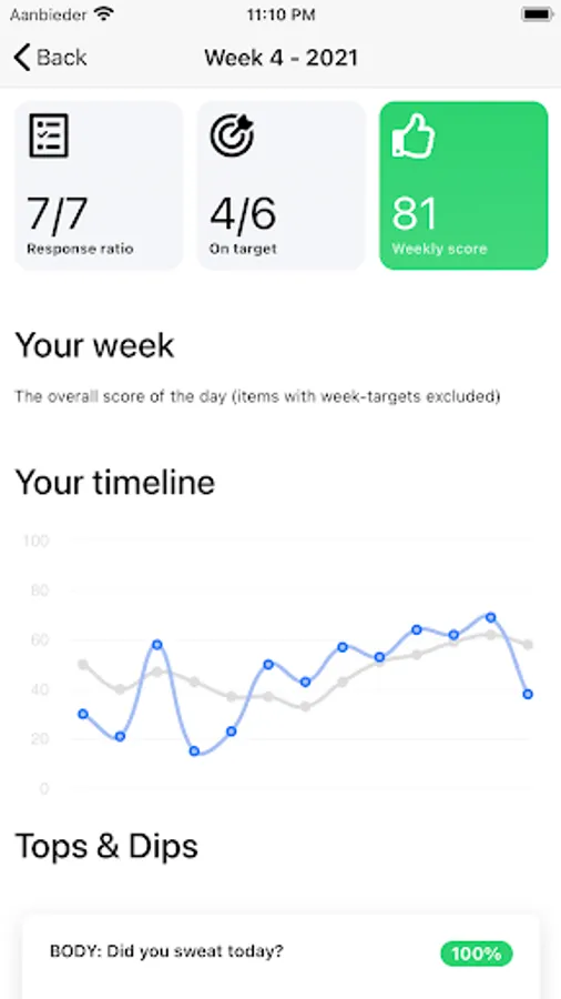 The app that facilitates a daily question, measurement and reporting process, to help coaching clients focus on personal goals, develop habits and monitor progress.
