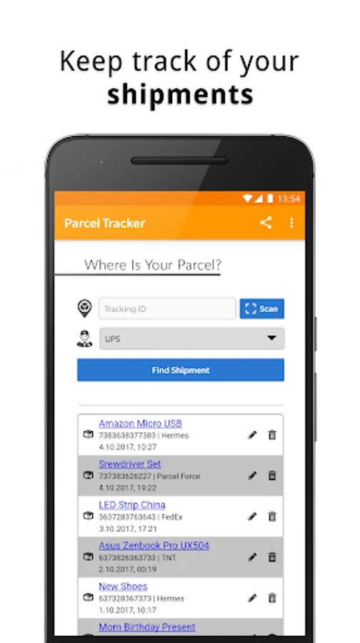 USPS, UPS, FedEx, TNT... No registration needed. Download Parcel Tracker to track all your shipments in one simple and beautiful app for free!