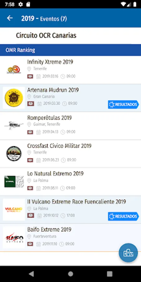 This App allows you to follow the results of each of the events of the events that make up the Obstacle Championships associated with OCRA Canarias. In the events with live tracking, you can follow the course of each test, accessing the detail of each of the control times of each of the athletes participating in each of the events of the series. You can search for your favorites to follow them more quickly and directly.