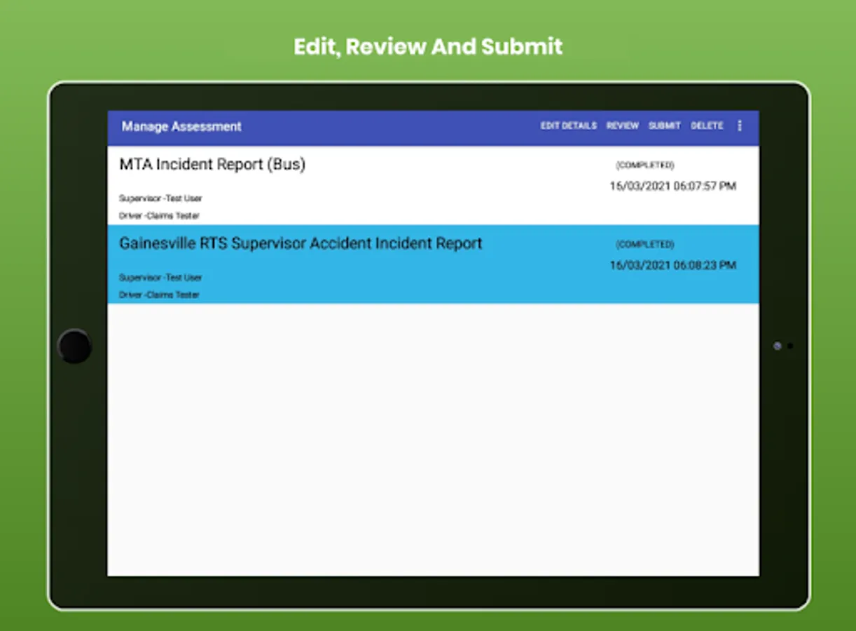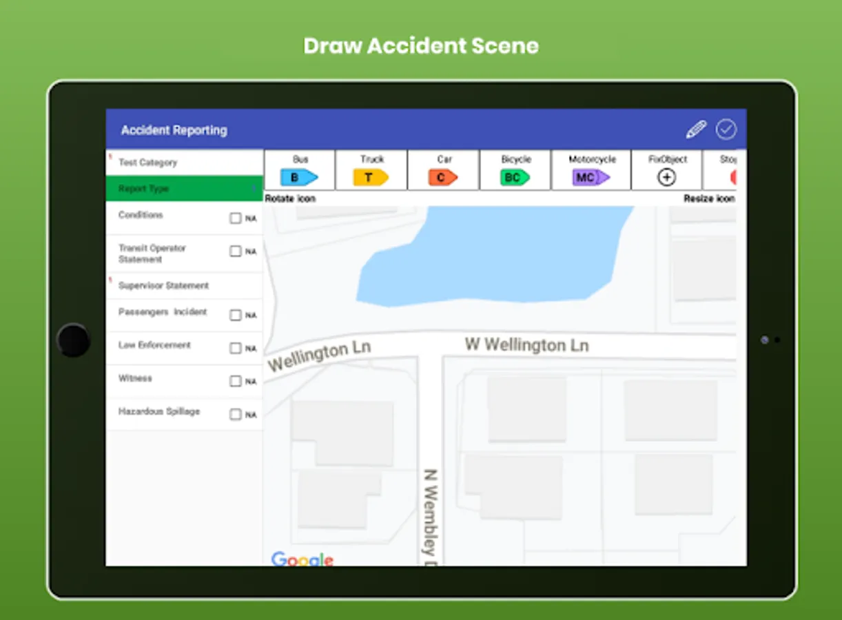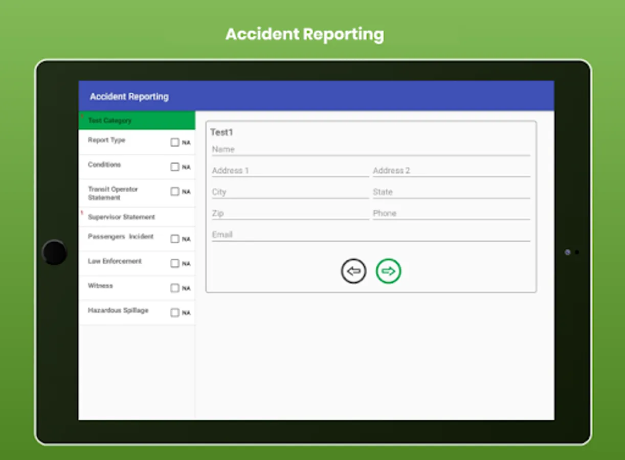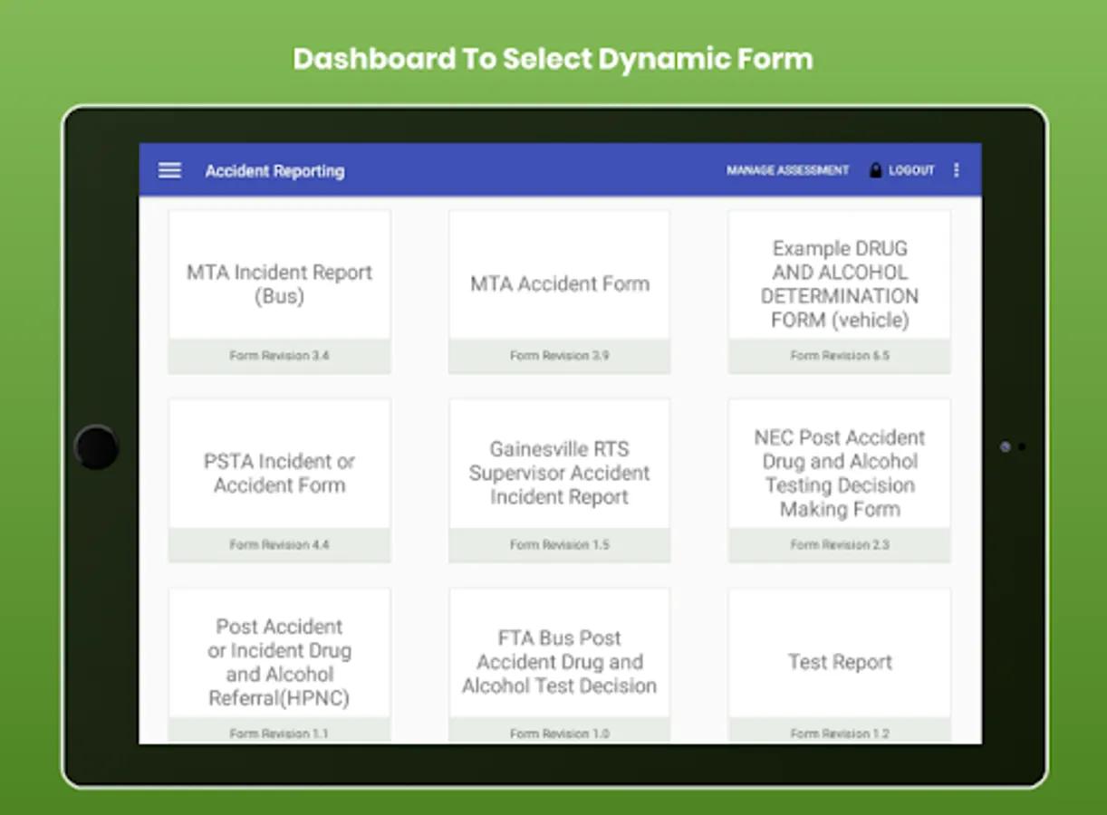 Trackit Reports app is designed for Trackit customers to create, publish, and complete accident and incident forms on the mobile device. A user of Trackit Manager can create custom forms, publish the forms to associated mobile devices. Users can complete the form in the field and upload the form to the website for approval.