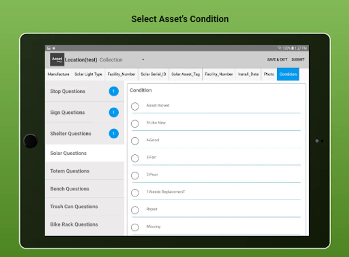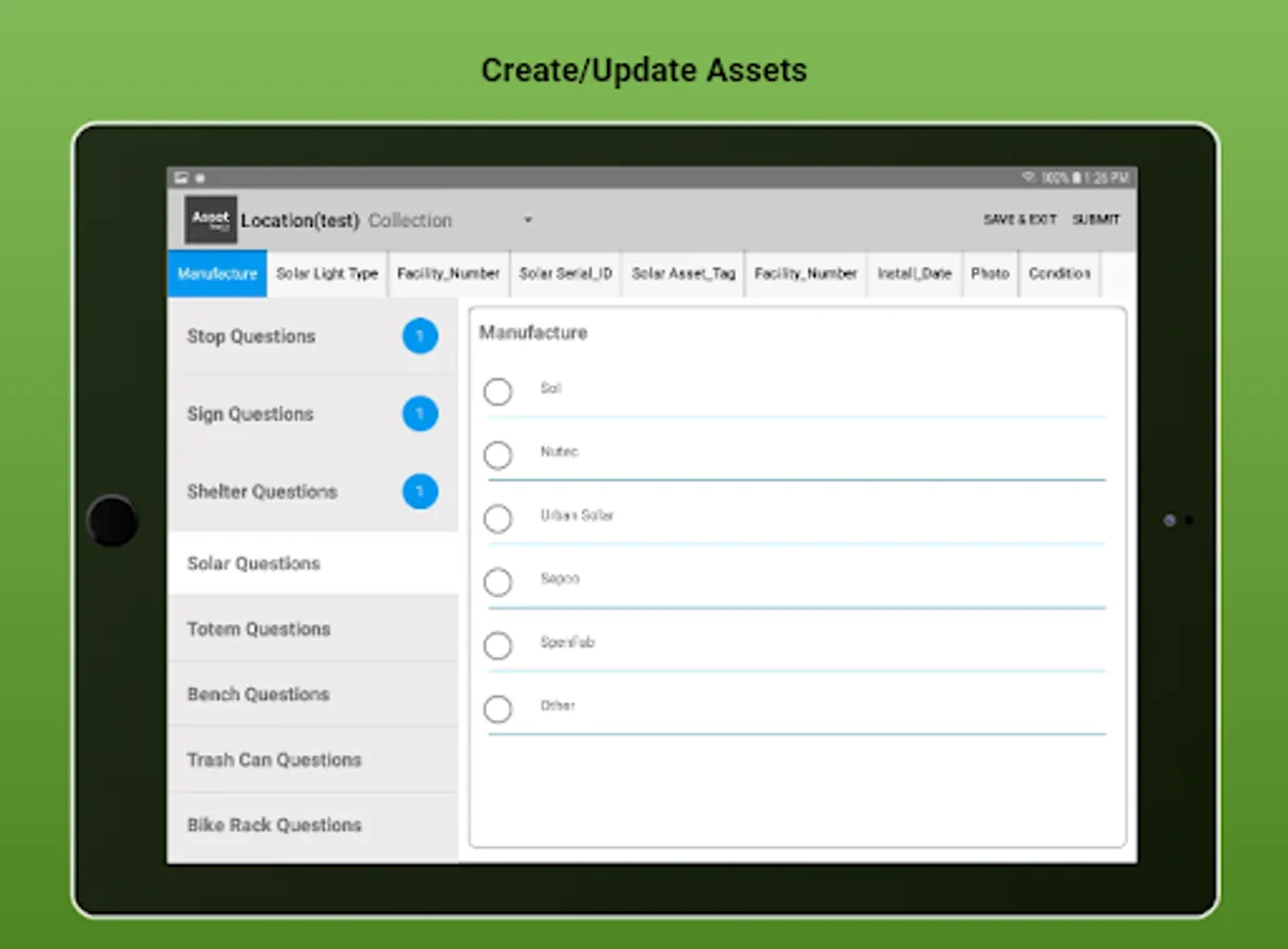 The app is fully integrated with Trackit Manager. Designed to manage assets in the field including assets at bus stops, equipment, facilities. Designed to meet the asset management regulation set by Federal Transit Administration for transit agencies.