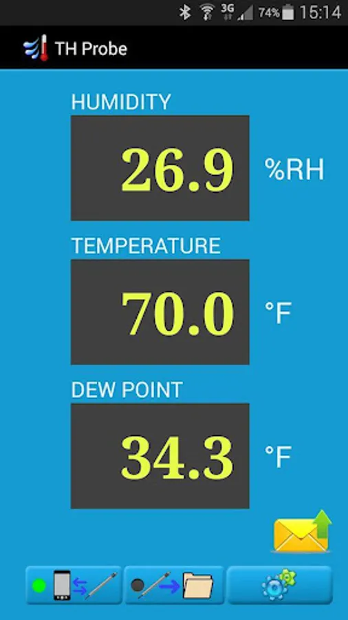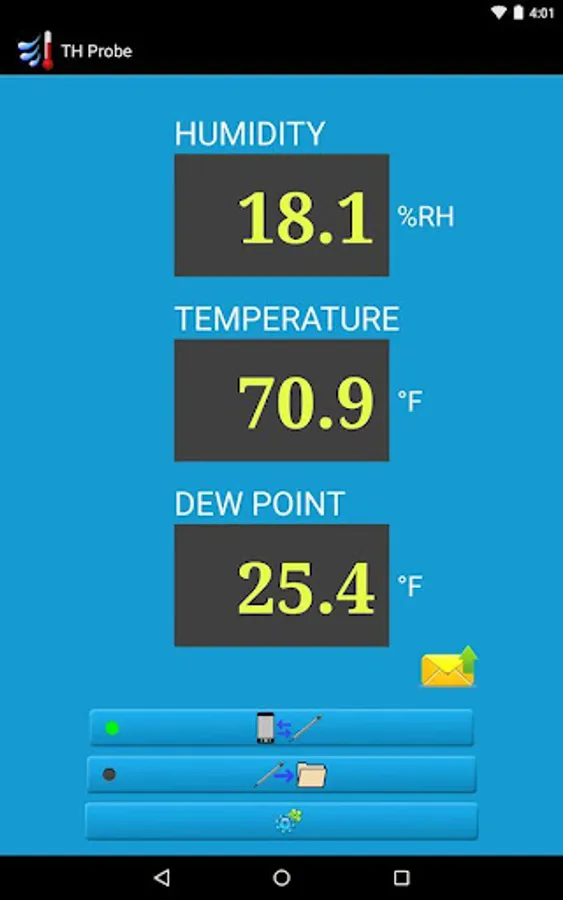 This application allows the user to use an Android phone or Tablet as the display device for the highly accurate humidity / temperature USB probe. The application displays the values of Humidity and Temperature in large digital windows.