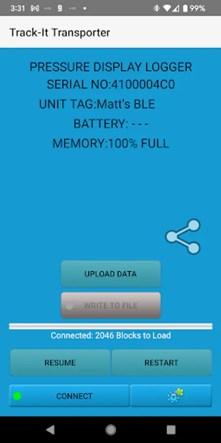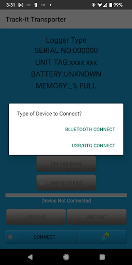 This Android application enables users to retrieve data from Track-It™ Data loggers in the field and save the data files on your device or email it directly. It requires the use of a "USB-on the go" cable or Bluetooth capable device. The application identifies the logger, uploads the data, writes it to a file and enables the user to resume recording or clear memory and restart recording.