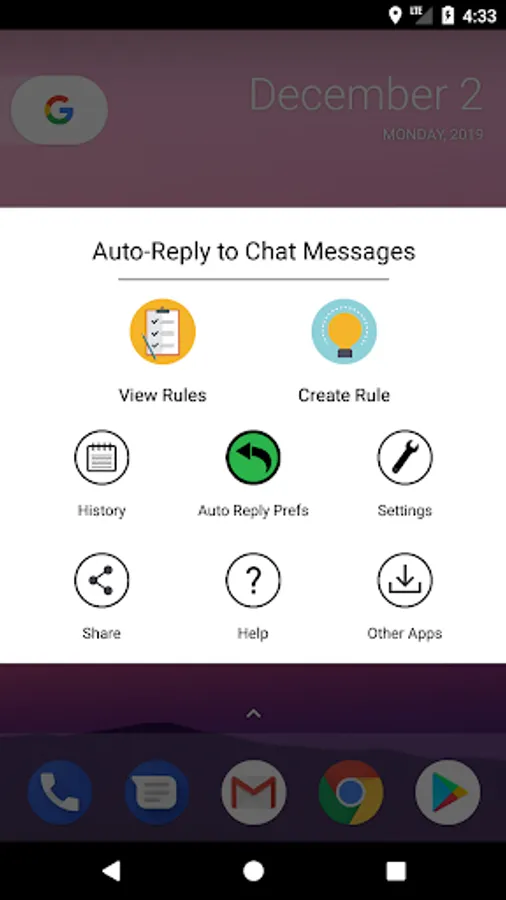 That's it. The app will then keep checking for incoming chat messages and if it matches with the text messages you have in any of the rules, then the reply will be sent. Otherwise the chat message will be ignored.