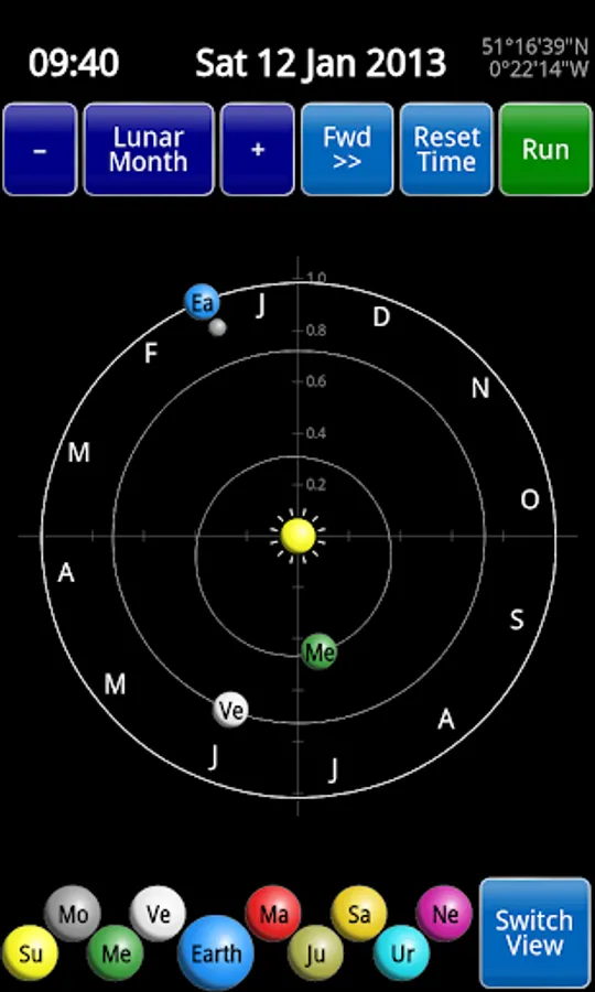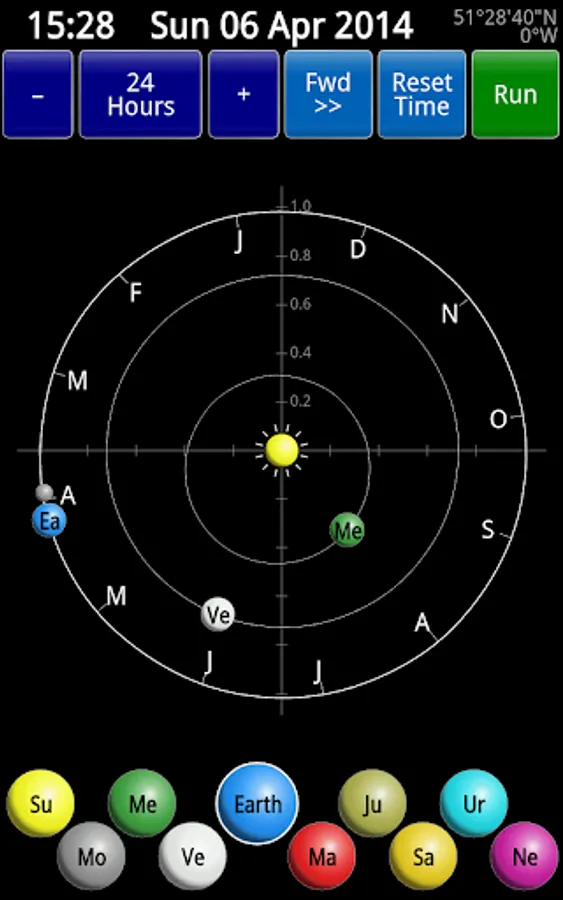Planetscope is a useful reference tool that calculates the positions of the 8 major planets as they orbit around the Sun, as well as the Moon's orbit around the Earth, displaying the results on 3 different views: