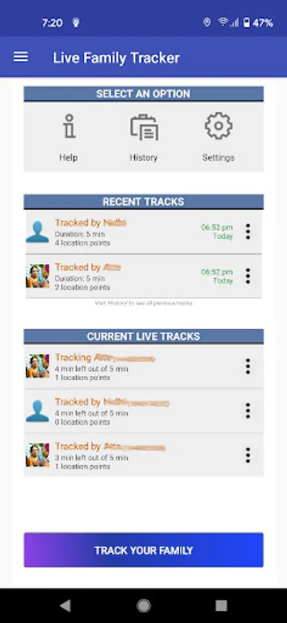 3. You can now track your family members by adding them to the track list and specify the duration for which you want to track them.