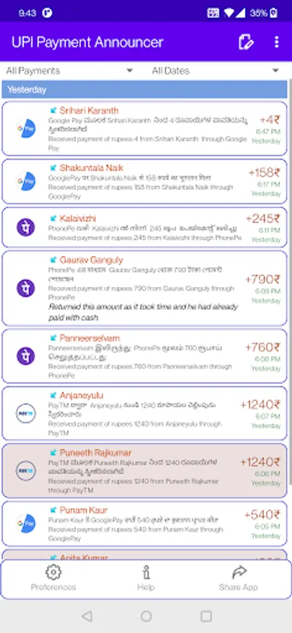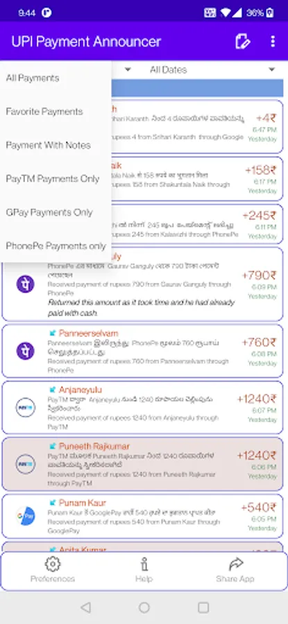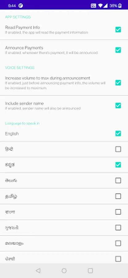 The app announces the incoming payment information when there's incoming payment into PayTM app, PhonePe app, Google Pay app or Bhim app.