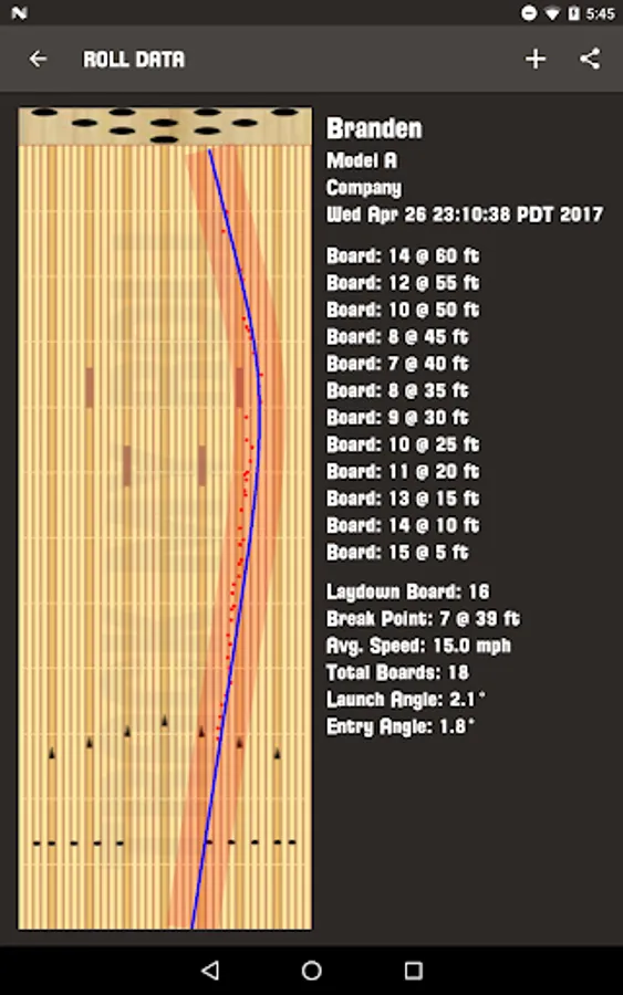 Track My Roll gives you shot graphs and valuable data including launch angle, break point, entry angle, ball position and speed. Graph multiple shots to a single set. Then export the graphs to your files or share them on your favorite social media sites. It can also store multiple bowler profiles and ball arsenals. Anyone who loves to get immersed in the technical aspects of bowling will want to have Track My Roll in their pocket!