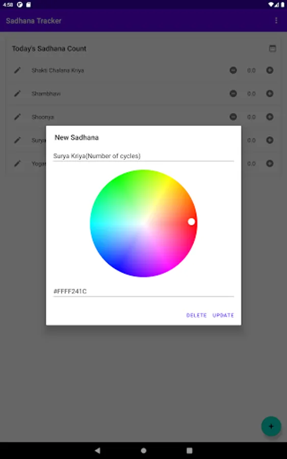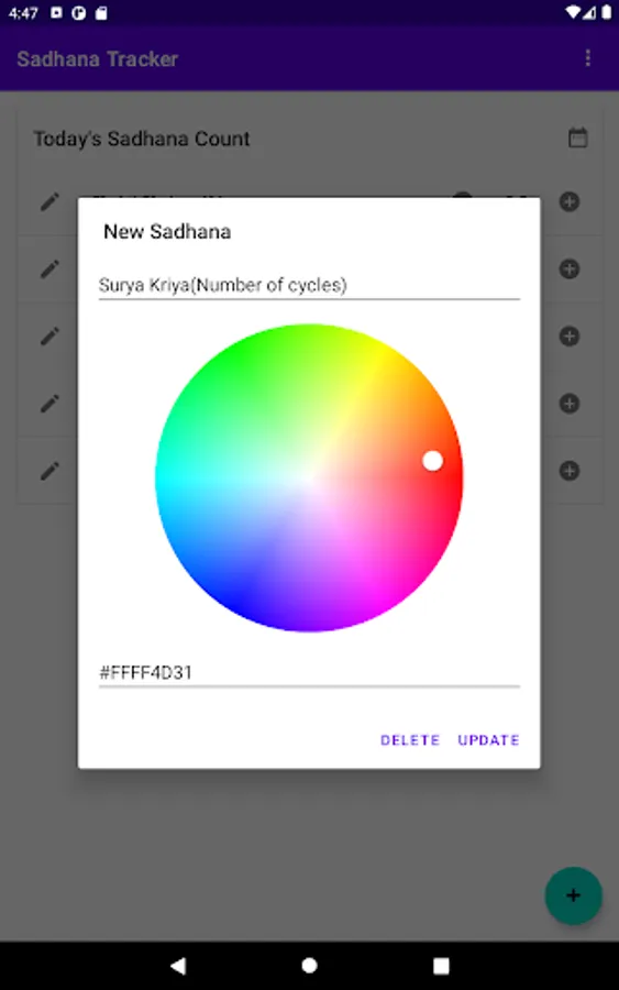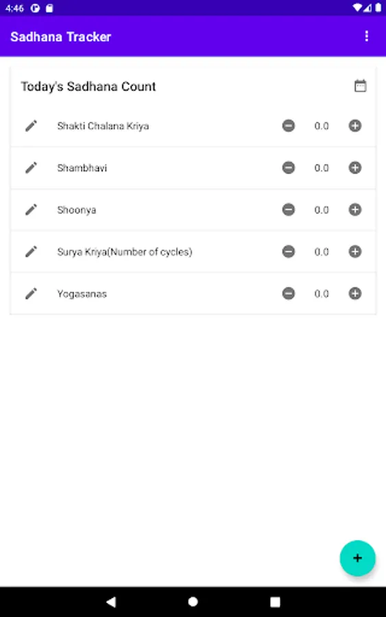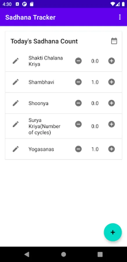 The purpose of this app is to analyze one's sadhana over time graphically. The user needs to update the number of times he/she did each sadhana every day. Based on this data the app will show a graph to analyze the sadhana. Users can also update sadhana count on trackmysadhana.web.app.