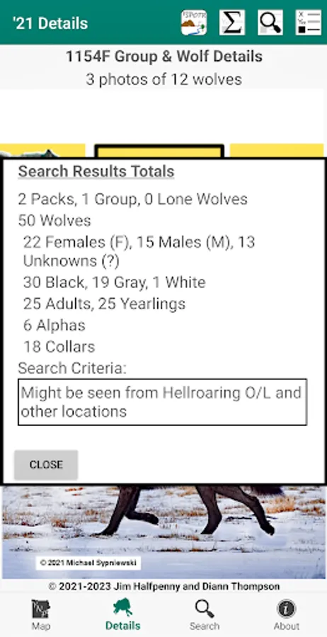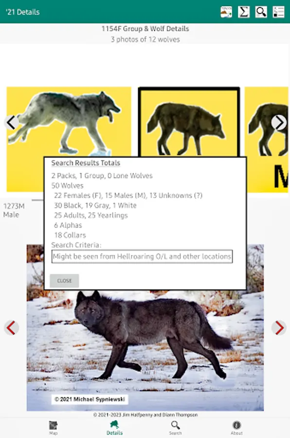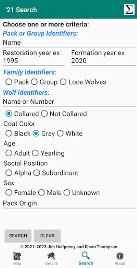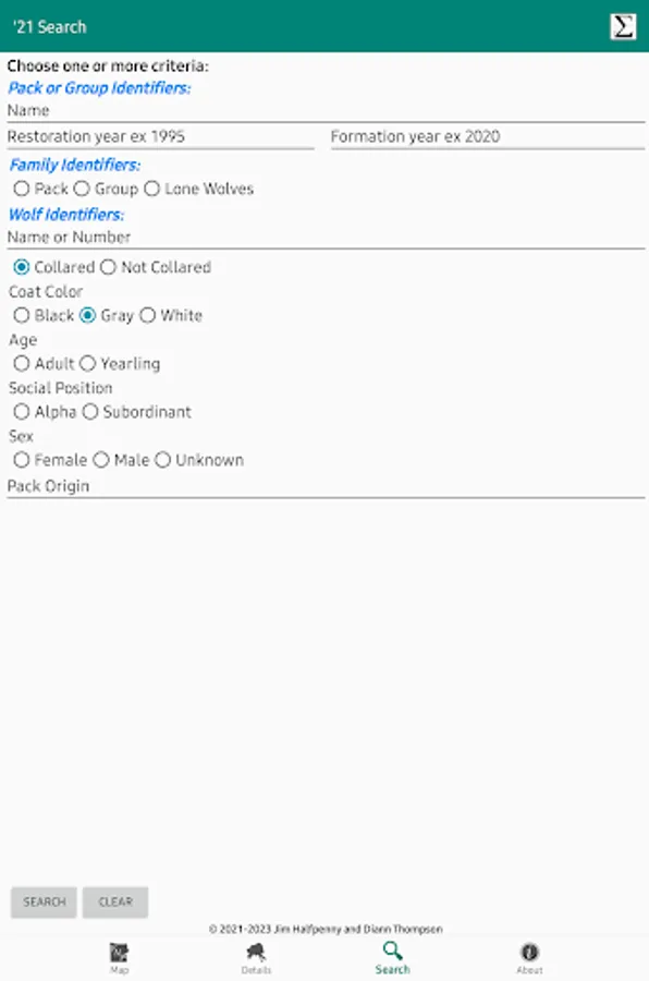 - Search - criteria to select a specific set of Packs & Wolves in the Details screen