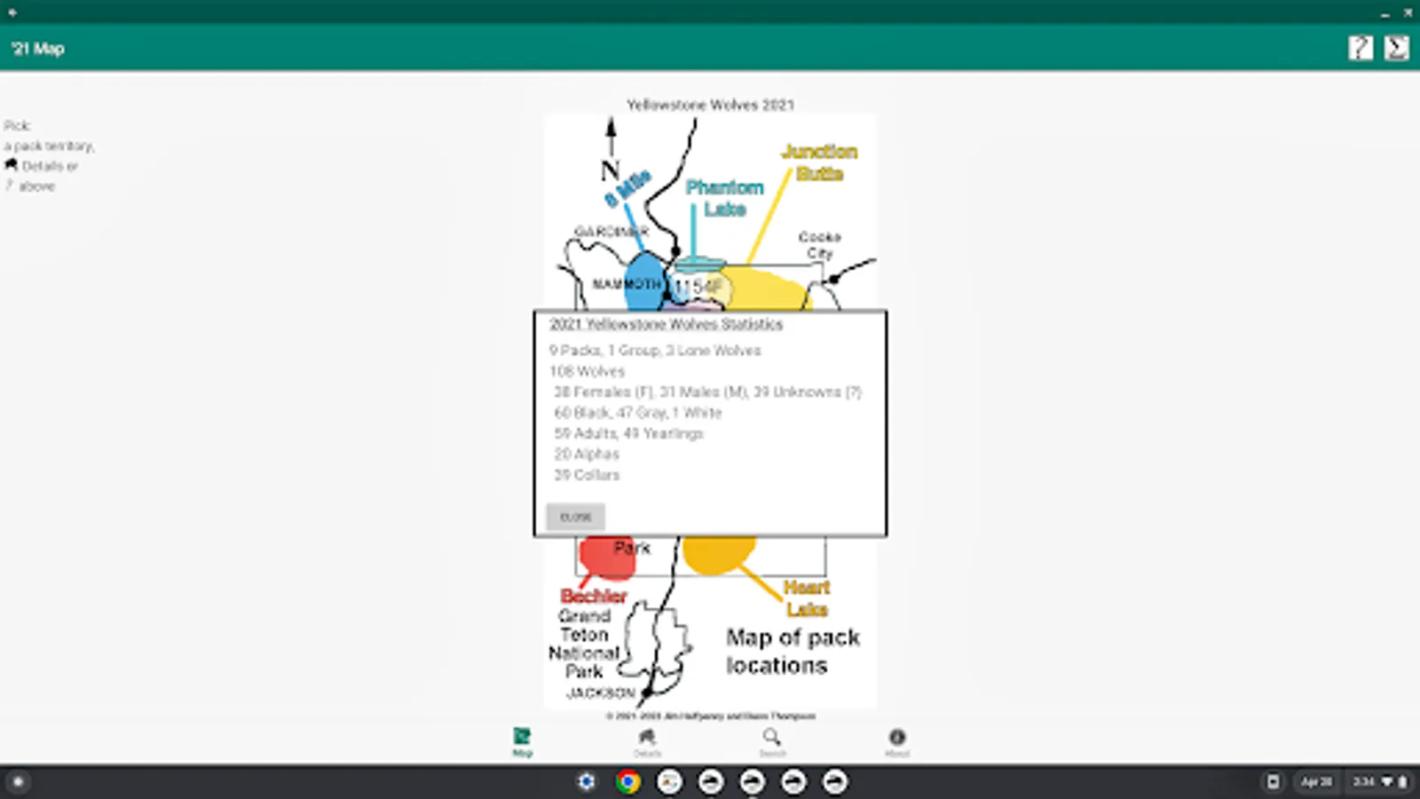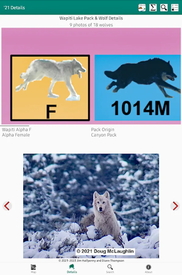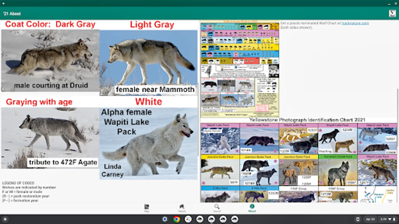 2021 is the 26th year since the reintroduction of Wolves into Yellowstone NP & it saw change, e.g., adding Packs, movement of wolves between Packs. The result of this change is reflected in the annual chart & companion app Yellowstone Wolves 2021. Version 1.1 adds support for large-screen devices (e.g., Chromebook) & keyboard support.