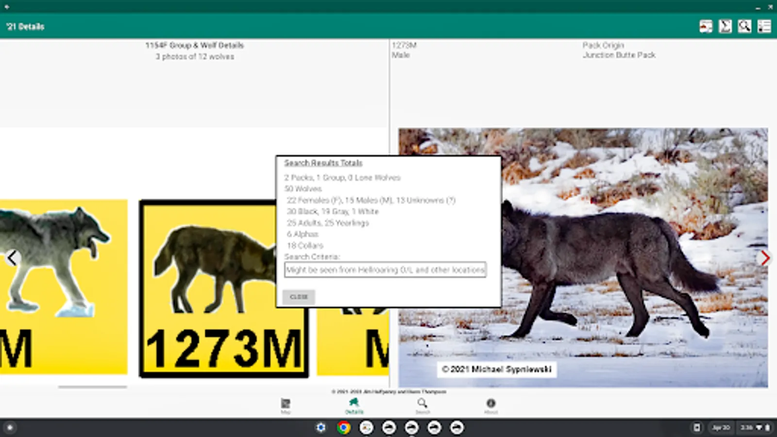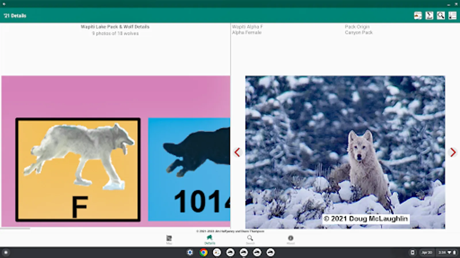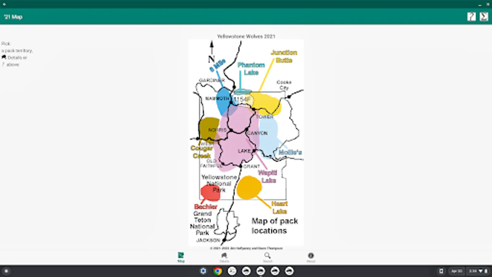 2021 is the 26th year since the reintroduction of Wolves into Yellowstone NP & it saw change, e.g., adding Packs, movement of wolves between Packs. The result of this change is reflected in the annual chart & companion app Yellowstone Wolves 2021. Version 1.1 adds support for large-screen devices (e.g., Chromebook) & keyboard support.