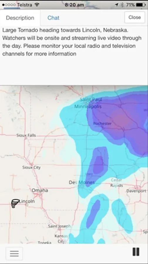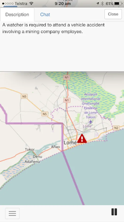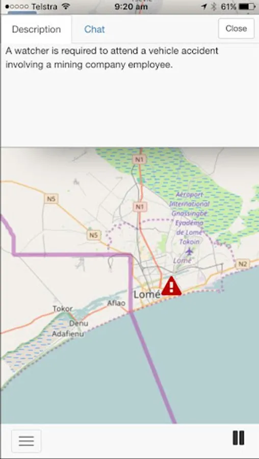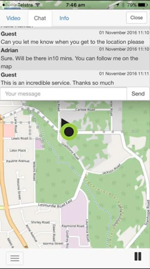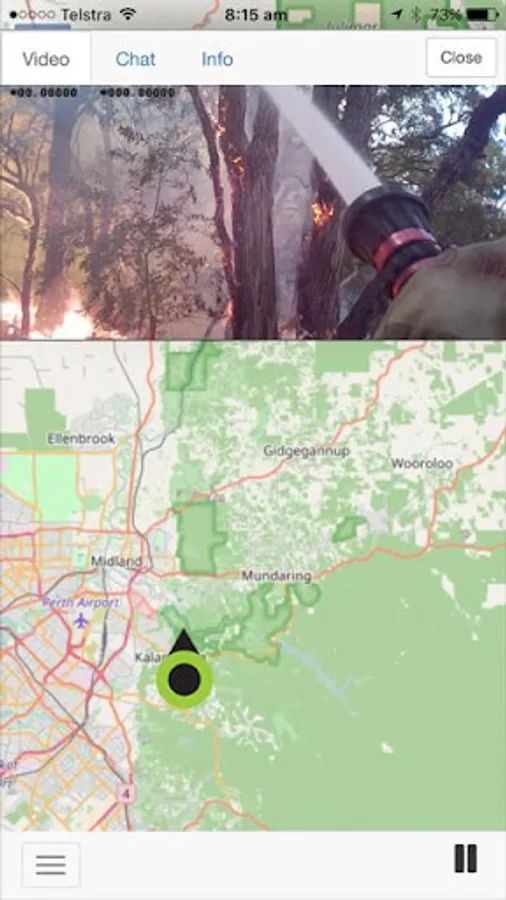 A Red-flashing marker indicates that the Watcher is streaming live video and if the video is public you can watch the event or incident by simply clicking on the marker. You can use the chat facility to talk to the watcher during the event.