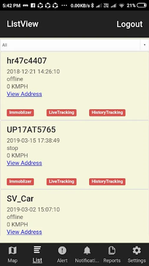 1.Current status of vehicles (speed , address , gps coordinates,timestamp,heading) are shown app using mapview and listview.