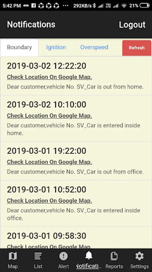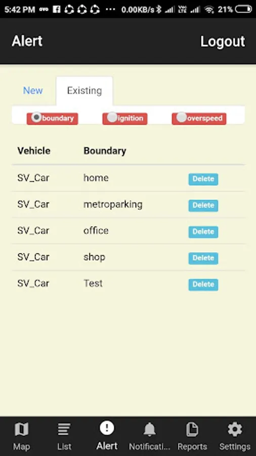 4.Alerts (Geofence ,Ignition,Overspeed ) are present .