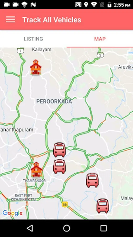 • The status, location and other details such as name, parked time, etc... of buses are graphically represented on a map. They can be viewed on a single touch.