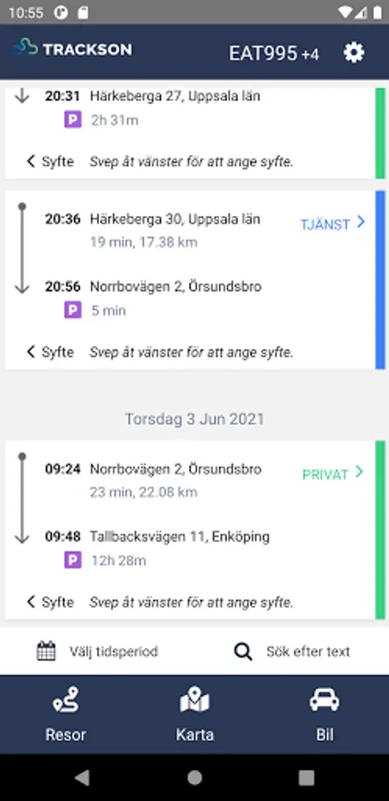 Our electronic logbook digitizes the paperwork and meets all requirements from the Swedish Tax Agency.