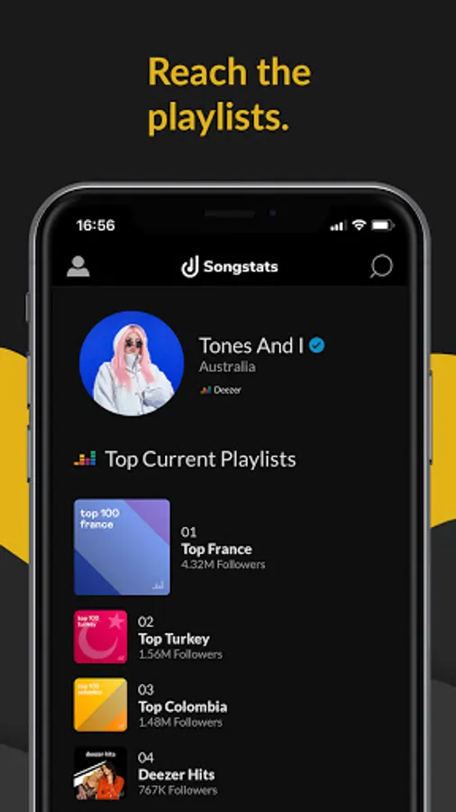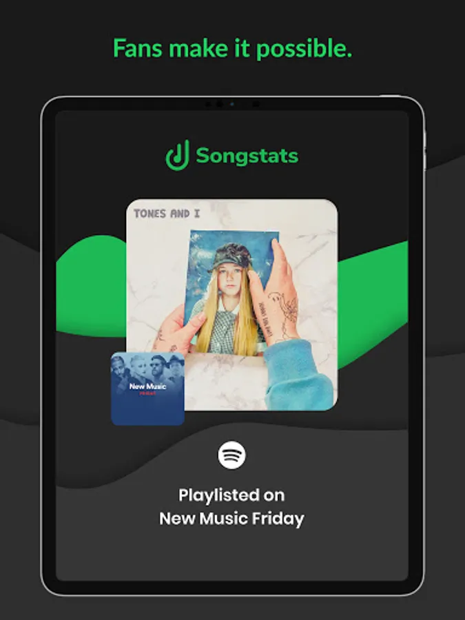 Songstats provides you with a comprehensive overview of how your music is performing across the most important streaming services and download stores. The Songstats mobile app sends push notifications when your tracks are added to major playlists, reach new milestones, and chart in different territories and genres.