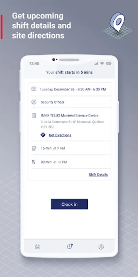 TrackTik SHIFT is a mobile app that was created for employees in the security industry to provide them with greater visibility on their schedule as well as a more direct way of receiving new and updated schedules. The app allows officers to view scheduled shifts, clock in and out for assigned shifts and breaks, pick up open shifts, view their availability and acknowledge shifts in a few easy clicks.