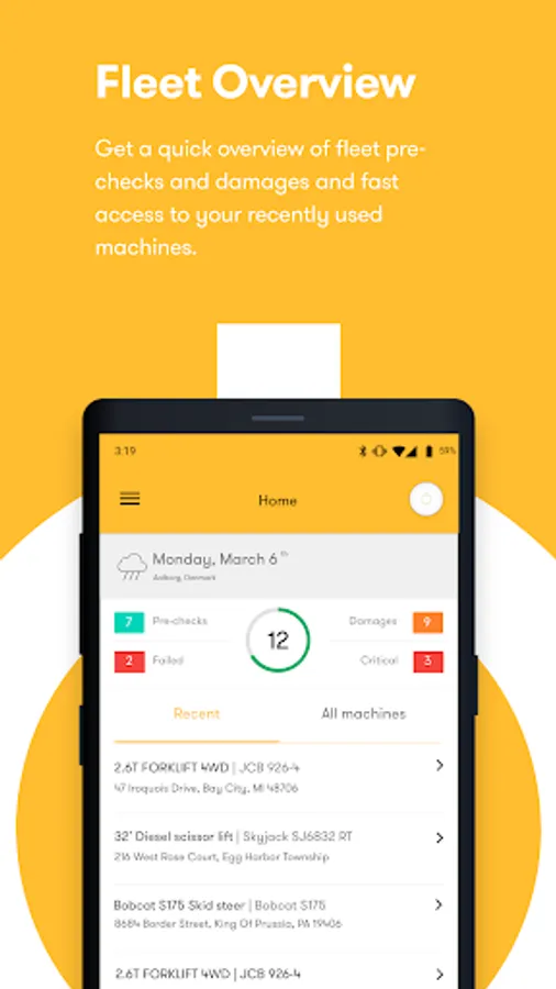 Trackunit On is your everyday assistant that will ease your workflow and keep your machine operators safe - day in and day out. Digitize your paper-based checklists - helping you to minimize data loss and increase operator efficiency. Stay on top of machine health - with Trackunit On operators can easily address damages as soon as they occur, and a reported damage is no more than a picture or comment away.