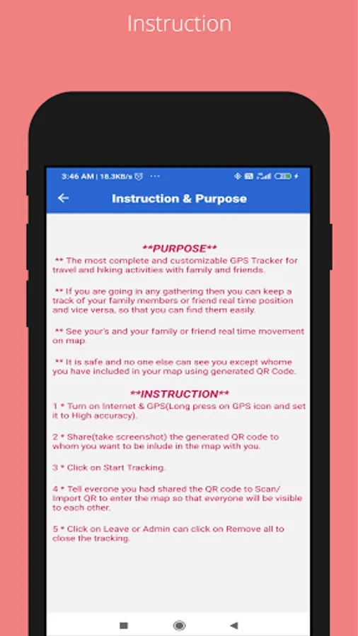 The Sole purpose of this app is if you are going out with your family or friends in public gathering or having bike/car ride, so to not loose any one and to be connected with each other like a group where only your family or friend will be visible to each other in that map so you can use this app.