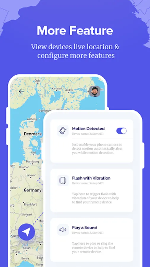 Track view allows you to remotely ring your device, track view remotely vibrate it or remotely turn on the flashlight of the connected device. Track view find the approximately accurate location of your device on the map and keep a track of it using track view device locator app.