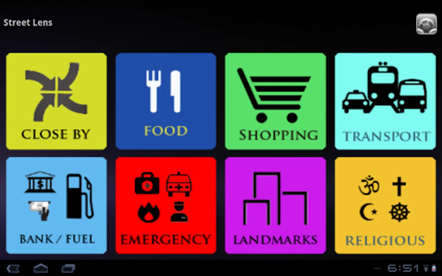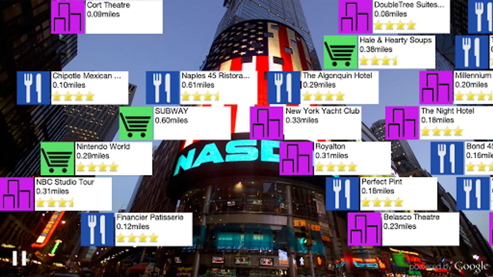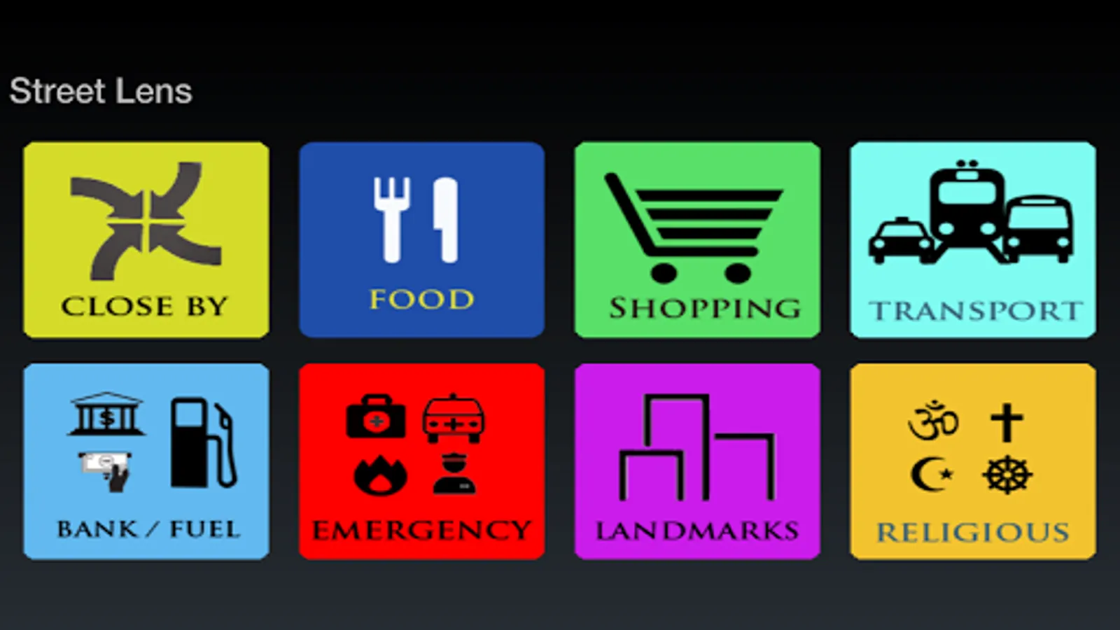 Street Lens is an augmented reality application that gives dynamic information about your surroundings such as shops, restaurants, banks, ATMs, gas stations, landmarks, police stations and other points of interest, shown as virtual signs overlaid on or above buildings.