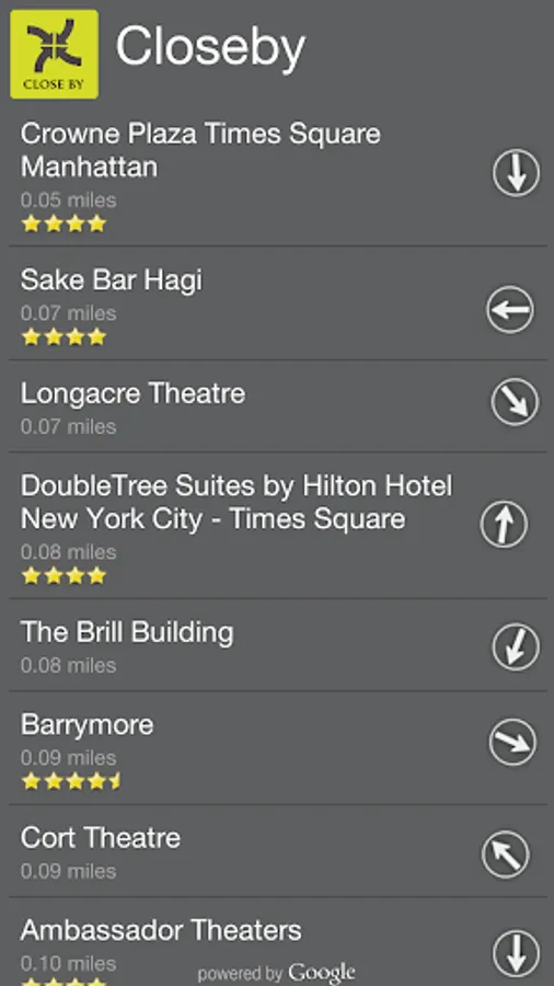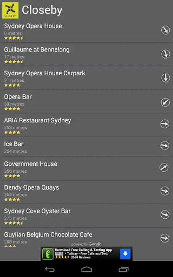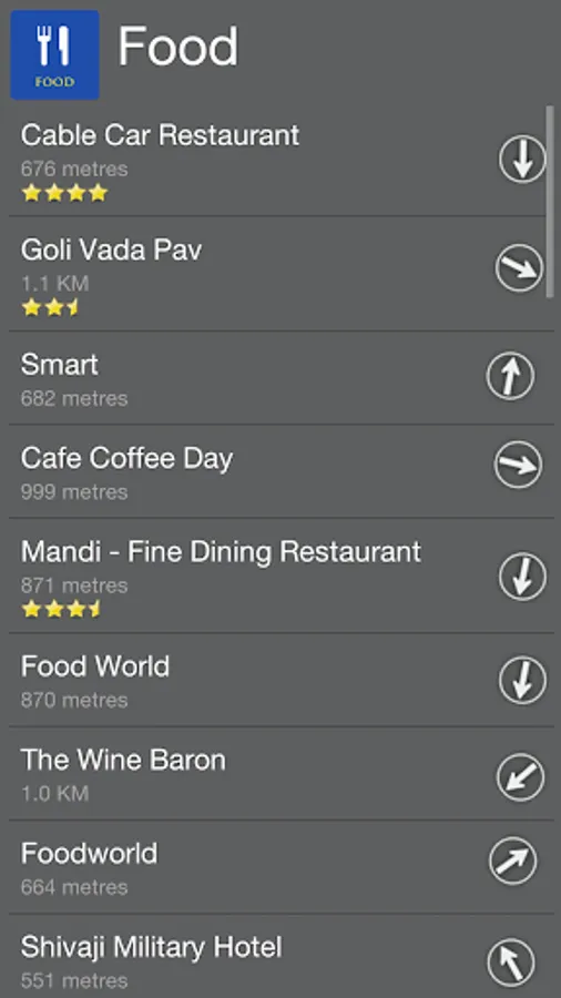Hold your mobile down and you will see all the places in Google Map view. Tilt again to portrait mode and you will see the list of places in list view along with the direction to each of those places.