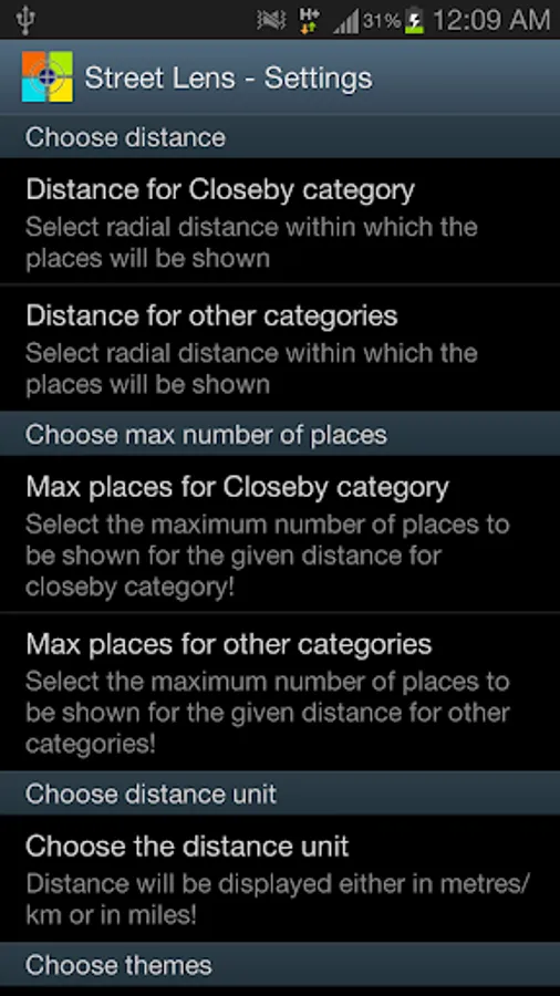 You can choose how close and how far you need the places to be shown. You can select distance from as close as 300 metres to as far as 5 kilometres. You can also chose how many places to be shown ranging from 20 upto 60. Make your camera your city lens and your street lens depending on the distance.