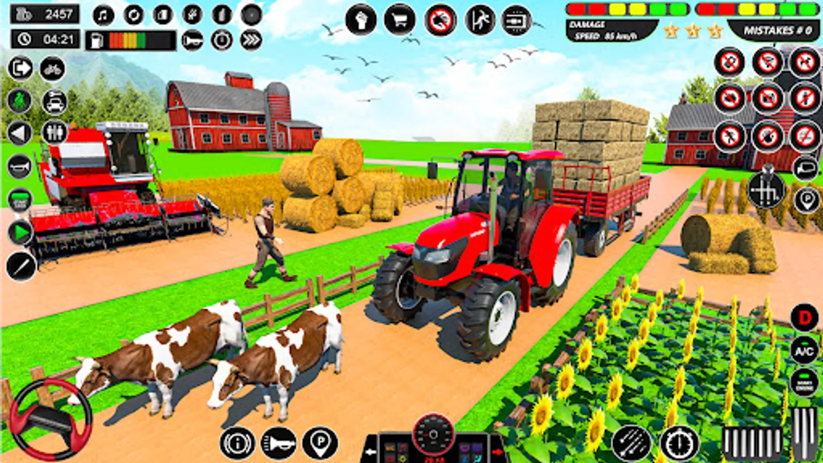 be careful of animal farm driving simulators and transport farming to other offroad tractors in combine transport tractor driving games. Attach yourself with a long list of farming machines and animal farms in tractor farming games. Farmer tractor driving simulator is hard in offroad combine village farm fields. Jump your career of agriculture farming with modern farm tractor driving games. Working the fields as farmer tractor driving game. In this new tractor wala game comes with multiple modes like crop mode, rice farming mode, drone and career mode with summer and winter season. Start first interesting level drive 3d farming tractors and attached to the crawls take the 3d farming tractor to the agriculture place with the help of arrows and start ploughing.