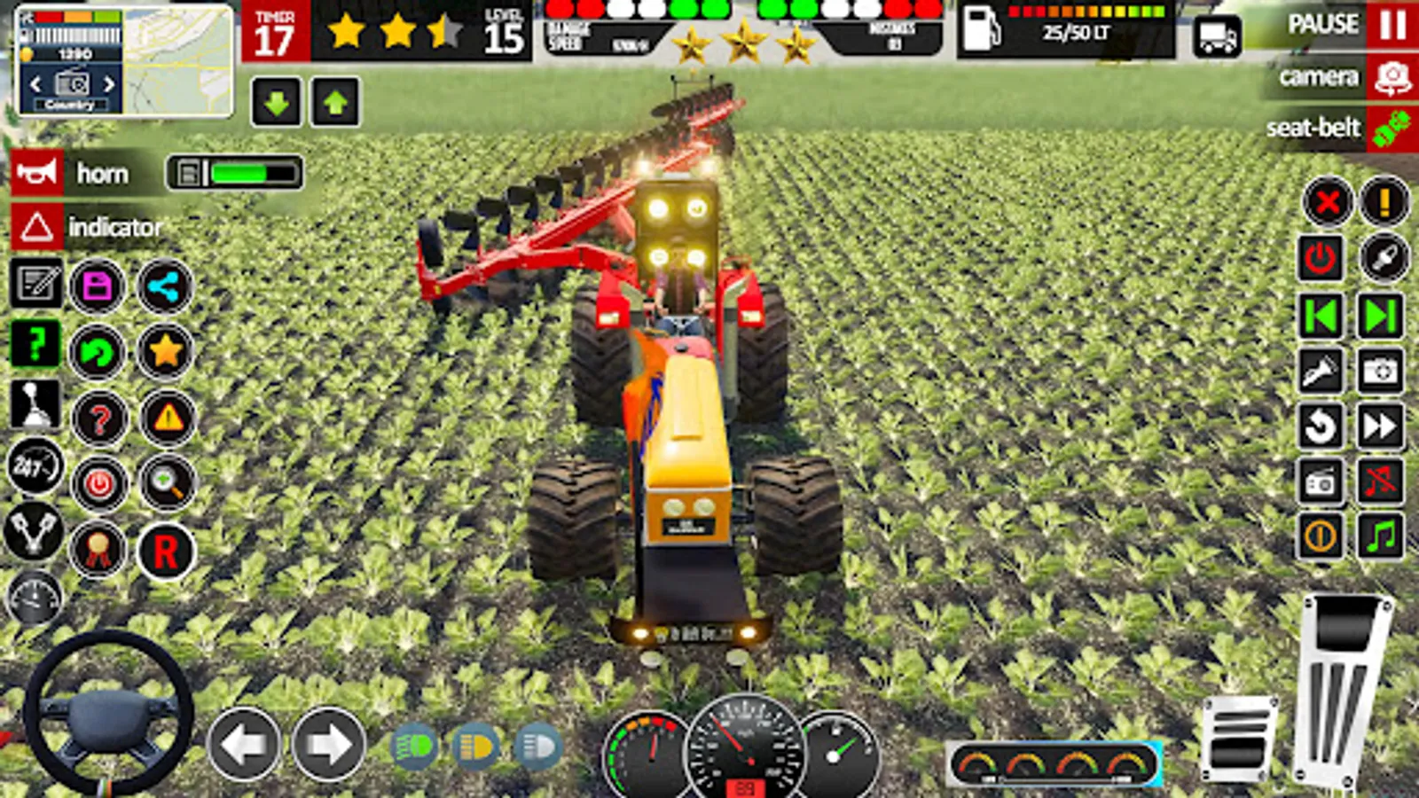 In this tractor game 2023 -tractor simulator 3d has multiple mode selection within thrilling Indian tractor game levels. So, select tractor wala game mode and lock first level of Indian tractor driving. Multiple tractor farming machines are available in our tractor games 2022 3d such as harvester, cultivator, watering tanke and plowing. Select your favorite modern Indian tractor from tractor farm garage and at your farming tractor simulator with plowing machine and start your ploughing work in tractor simulation 20223. In this real tractor games like a real tractor driver you will have to do many different tasks such as sowing the seeds, cultivating the crops, watering the crops and cutting ripe crops in tractor games 2023 3d. In this tractor trolly game grow different wheats such as rice, cotton, crones and crops in tractor farming game-tractor simulator game. Driver your indian tractor farming to load the luggage and sell them to the different farms and cities in our tractor trailor game- tractor game 2022 3d.