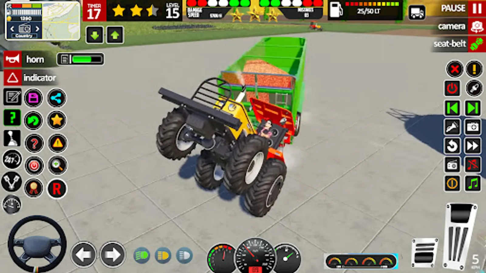 Enjoy farming tractor trolly game with impressive graphics, a mind-blowing realistic village farming environment and a uniquely designed tractor driving game levels that is a real test of your Indian tractor driving skills. By playing a difficult and challenging levels in tractor simulator games 2023 you will become best Indian tractor driver.