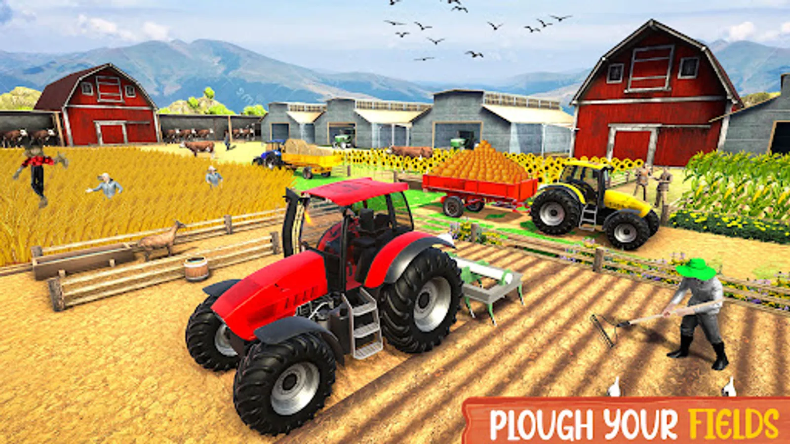 Welcome to the realistic river, hills & mountain view new tractor farming sim: tractor 3d driving games 2023 offline to enjoy farming in the peaceful cityside environment. Tractor farming sim: tractor 3d game is amazing mobile game that you can play offline & live a life of farmers around the world. Create a beautiful farm in your village in modern tractor farming 3D tractor sim 4x4 game. In Trolly Game, the drivers of tractor games play a vital part of tractor driving in farming games offline. New techniques of 3D Drone farming are very helpful in harvesting your crop in village farming game & give realistic farm environment to grow the farm in Modern Farming techniques. Plant, grow & harvest your favorite fruits & vegetables and also have fun caring for cows, goats, chickens, horses in your cattle farm. In tractor farming you can start with nothing but raw seeds, you'll use all your farming skills to grow your crops until they're ready to be sold at the market. New tractor farming sim is not only a tractor driving game, but it is also a farming Drone simulator 3d game where you will have to learn & develop 3D drone modern farming & modern tractor driving techniques & skills of farm village in tractor driver game & different cargo machines driving for cultivation in offroad cargo games.