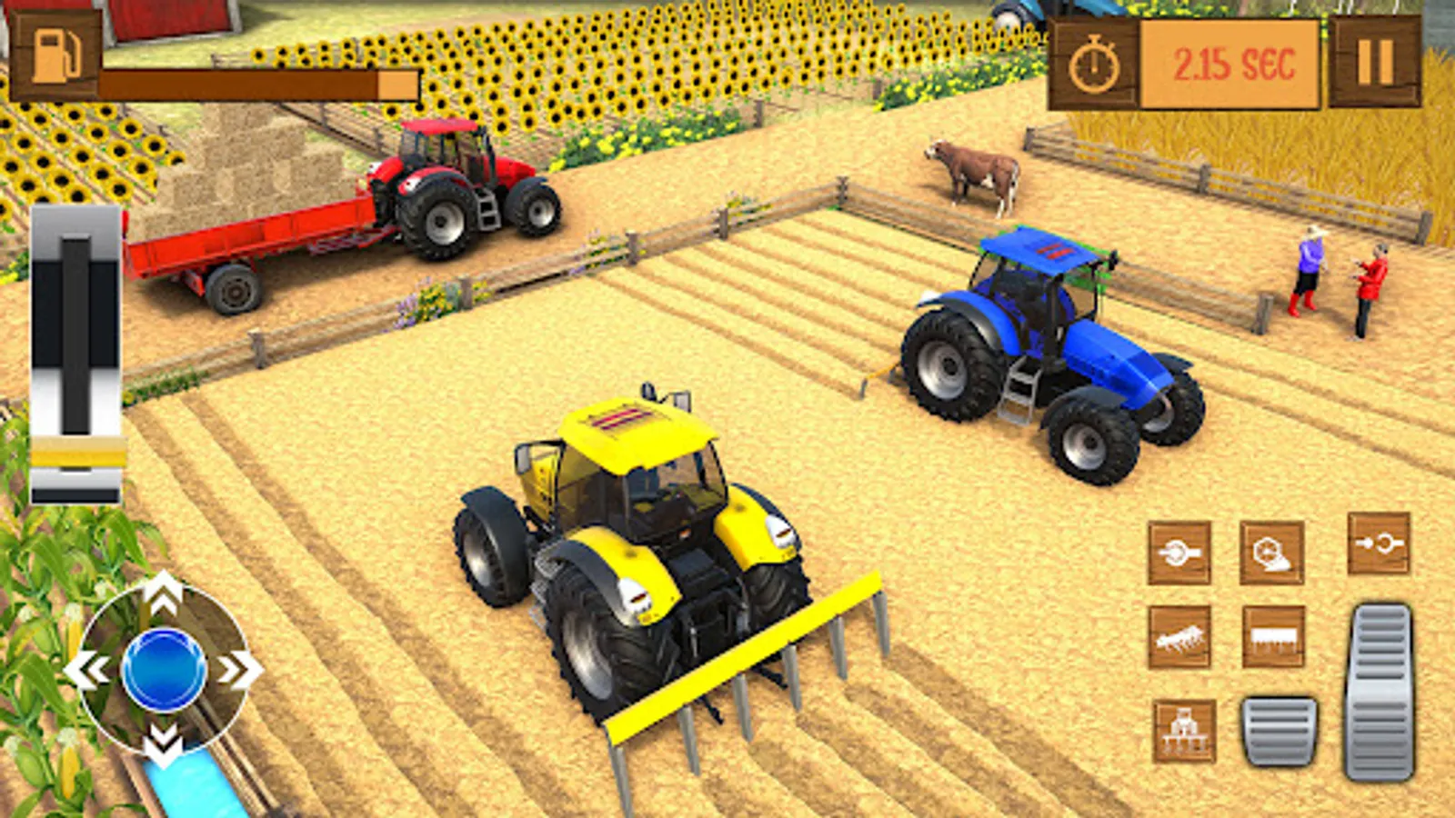 Grow new crops in tractor game such as wheat, sugar cane, potatoes, cotton and sell them into the city market for revenue in tractor driver game 2023. Plough the seeds with tractor in your field, plant your crops, watering the field in regular intervals, spray chemical to protect from insects. Distribute your crops after each planting cycle, make clever deals in the farm marketplace & collect rewards. Take care of cattle like cows, goats & sheep in the farm for proper milking & other farming benefits, than sell milk, wool & also farm animals in to the city market in village tractor game. In tractor simulation game, be careful with hurdles present in the fields. You can do all levels & modes easily with the help of directions if you have to follow the arrow signs you reach the destination easily in real famer games. This tractor wala game task is not easy you will have to know how to manage big harvesting tractor equipment & reaping harvest in the given time in tractor driving game.