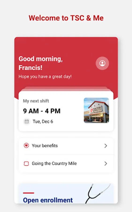 Introducing TSC&Me, the one app designed for and developed from feedback from Team Members. Team Members must be enrolled with multi factor authentication to access internal features. With the TSC&Me app Team Members will have the ability to view their schedule, benefits and total rewards.