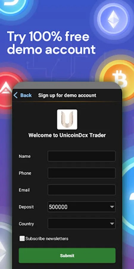 With the Unicoin Digital Capital Exchange Trader you can control your account, trade in the financial markets and use technical indicators for market analysis.