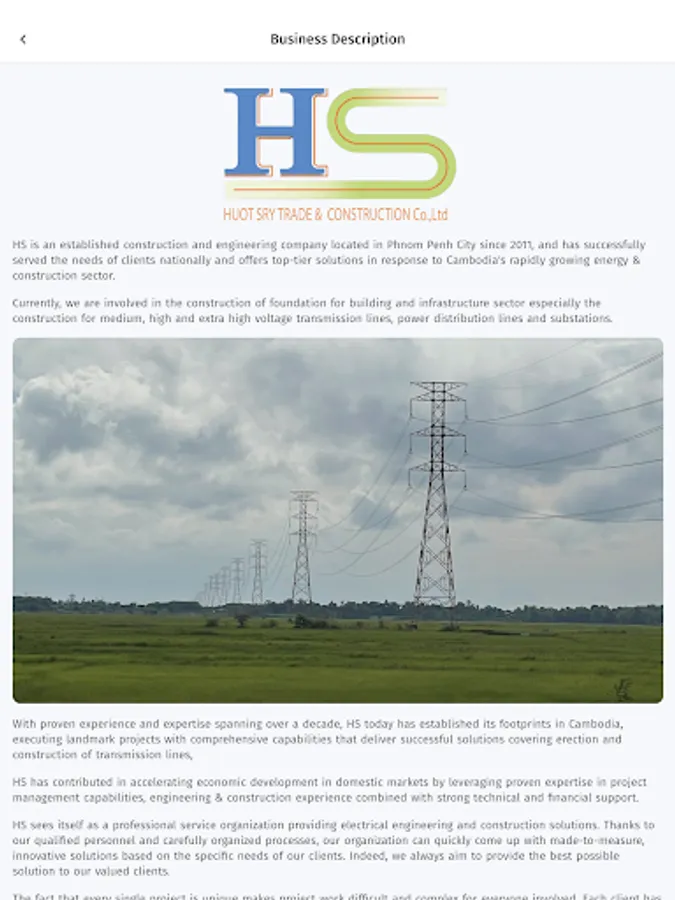 Huot Sry Trade & Construction Co., Ltd (HS) was established in July 2011 with the aspiration to be recognized as a provider of quality construction and engineering services. From our humble beginning as a contractor for various government ministries and commercial properties, we have grown into one of the successful construction and electrical engineering companies in Cambodia, specializing in bored pile & pile drilling works, road and bridge construction, drainage system and irrigation infrastructure development.