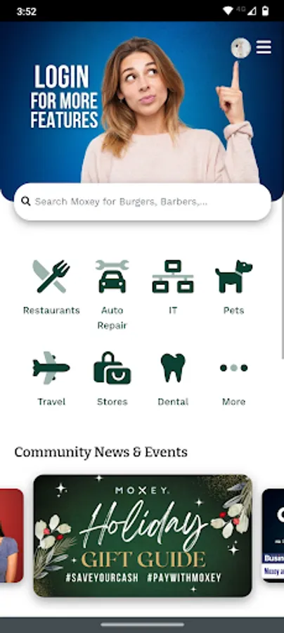 3. PAY - Don't have your Moxey card on you? No problem! Pay a business and other Moxey members using the app or use the app to show your digital card.