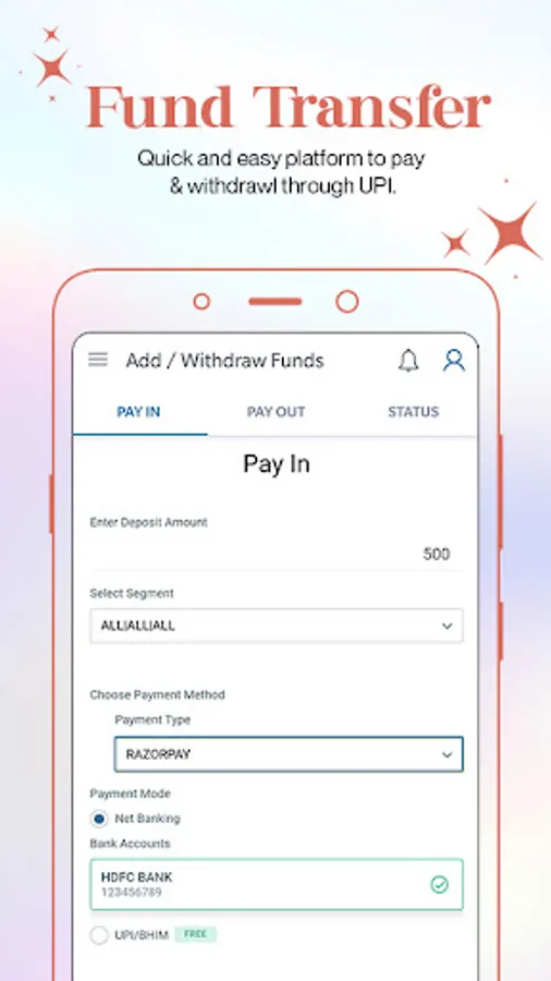 • Real time fund transfer using UPI & Net Banking Mode.