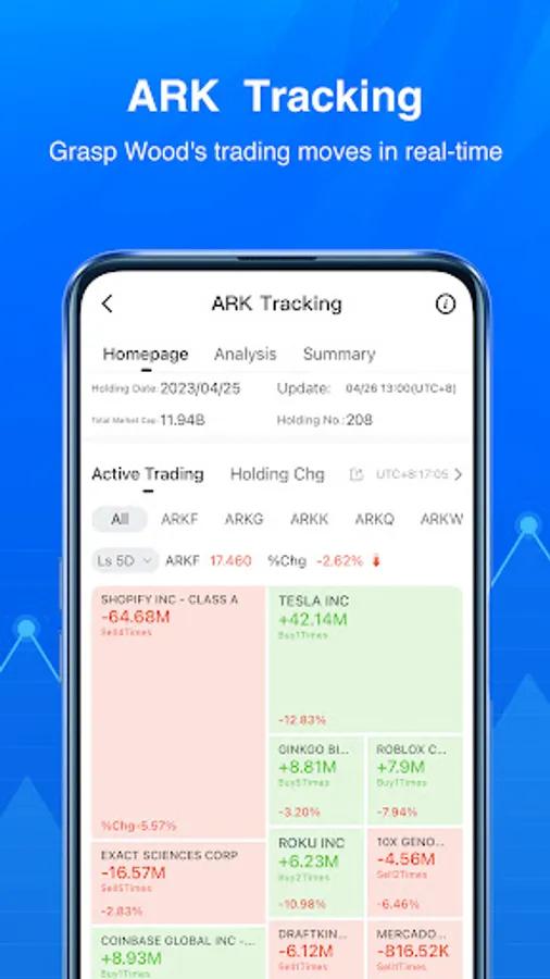 The US stock ARK and other star institutions holdings tracking analysis, including daily transactions, positions, transaction summary, size of redemptions, etc., but also each stock history operations, to help users to find investment opportunities.