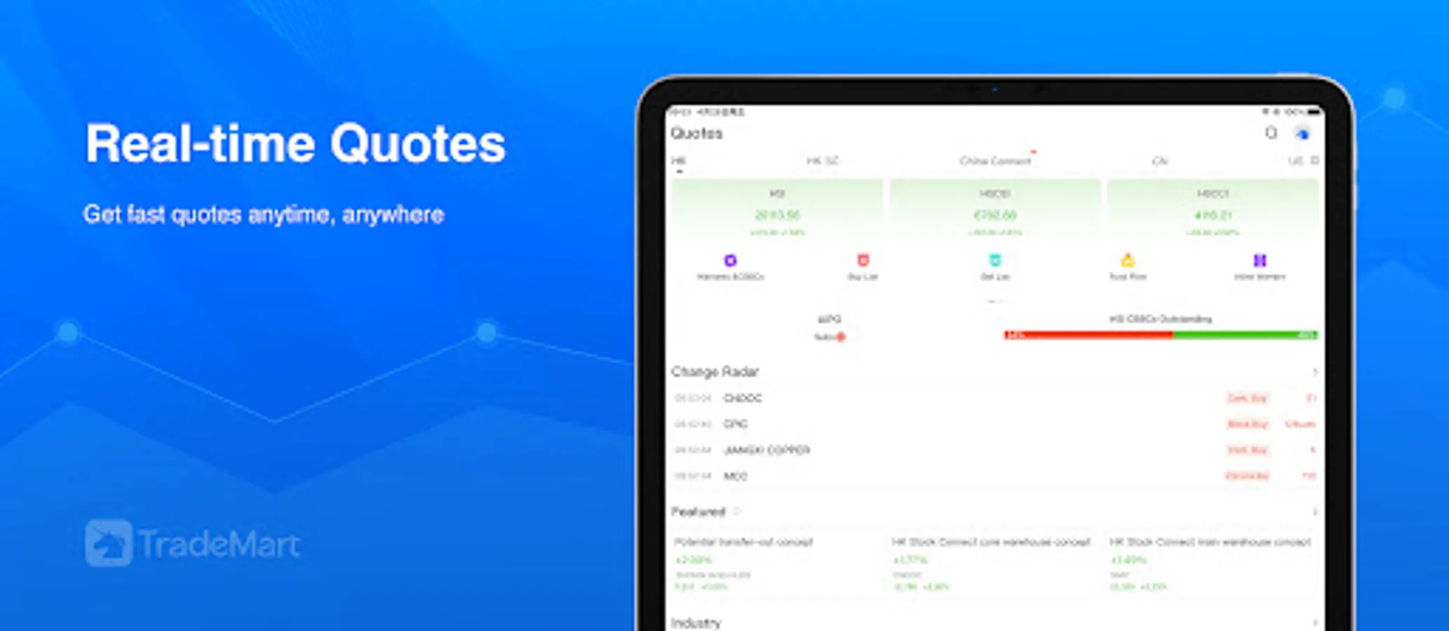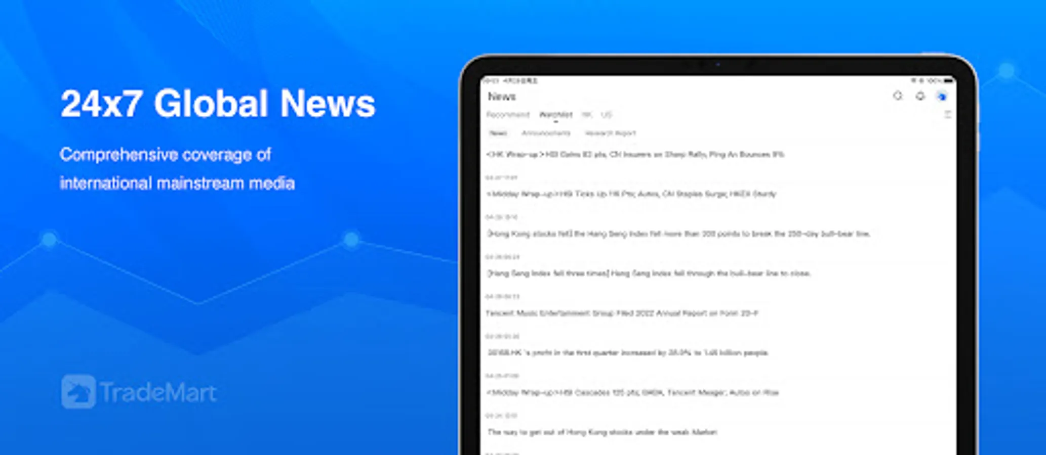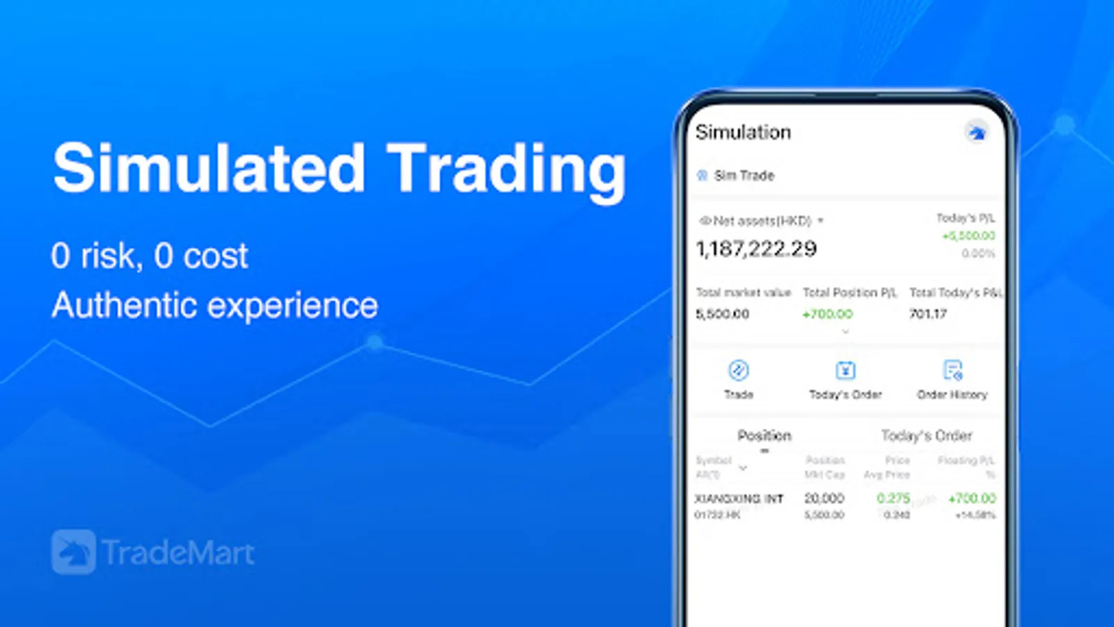 Trade Mart is a global Chinese investment platform for Hong Kong and US stocks, providing users with Hong Kong and US stock quotes, browsing information, investing, trading, communicating, and sharing with stock enthusiasts. It also serves as a platform for Hong Kong brokerage firms to internationalize their business and develop a global business. With the No. 1 and No. 7 licenses issued by the Hong Kong Securities and Futures Commission, we will be qualified to provide securities trading, provide automated trading services, and enter the market of virtual currency assets trading, bringing more possibilities for users.