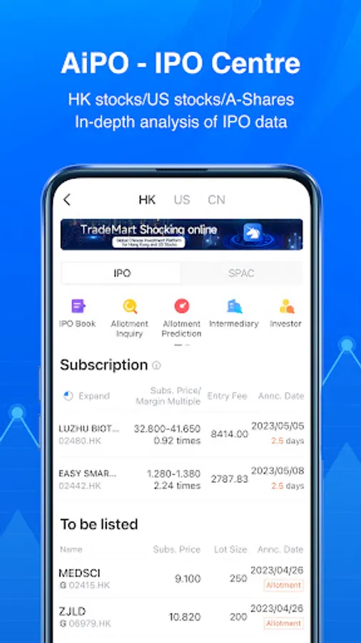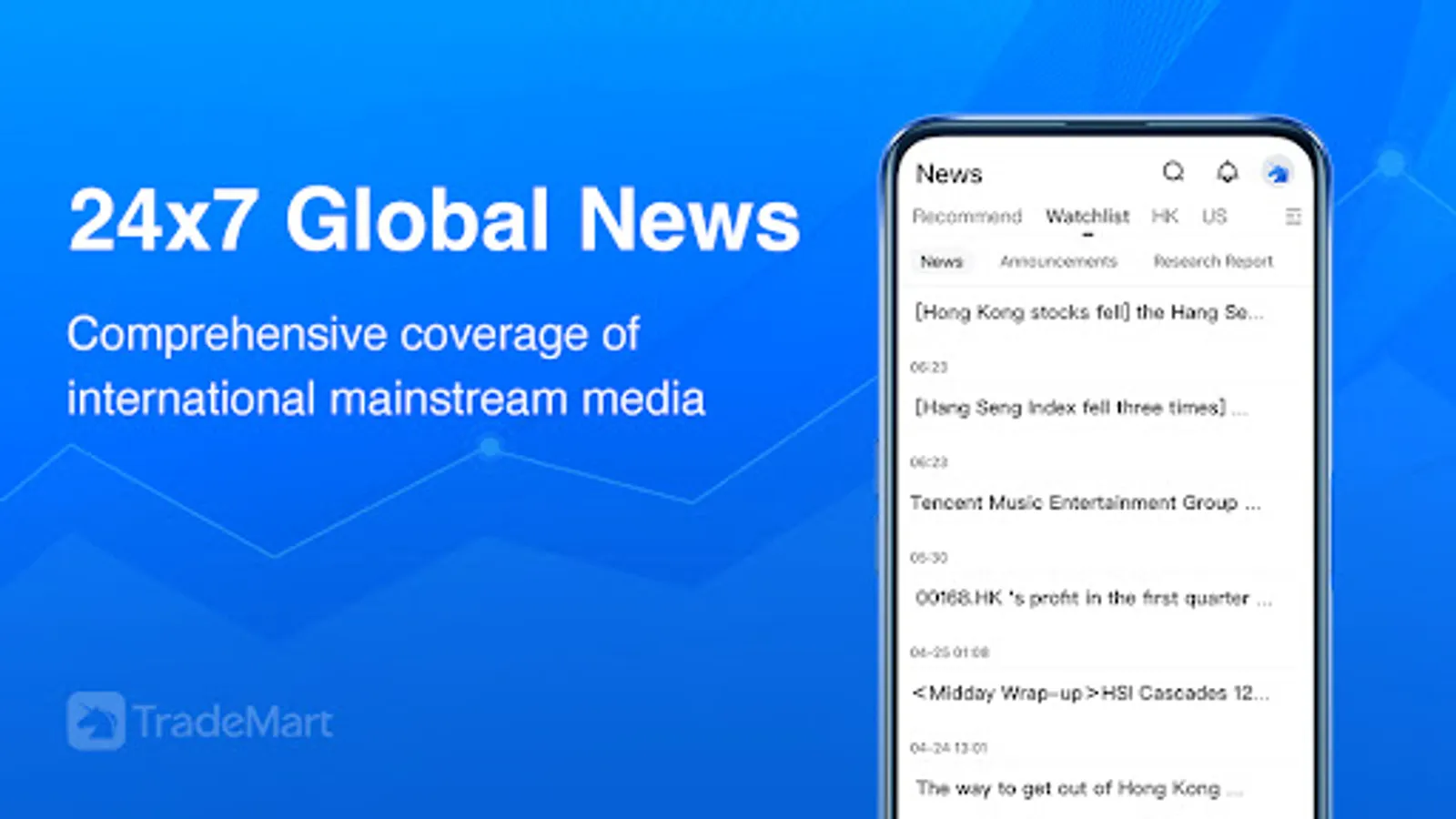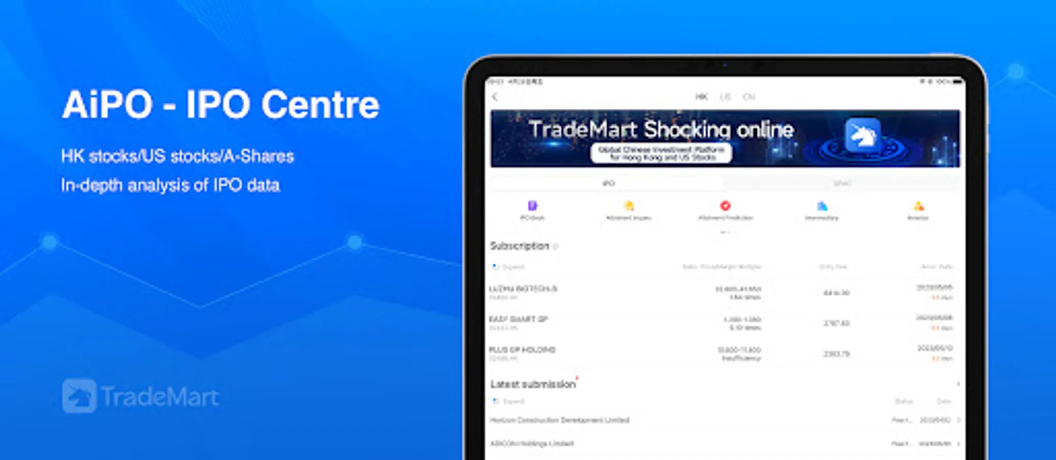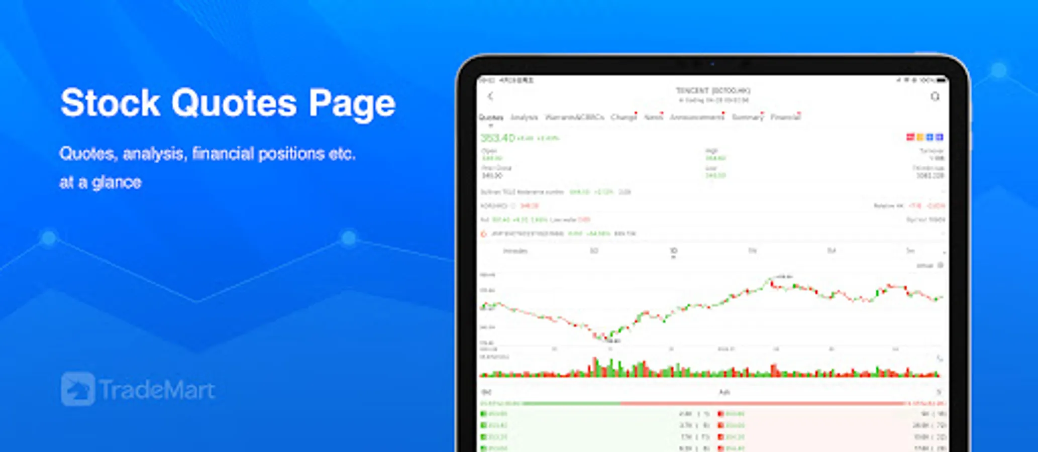 Trade Mart is a global Chinese investment platform for Hong Kong and US stocks, providing users with Hong Kong and US stock quotes, browsing information, investing, trading, communicating, and sharing with stock enthusiasts. It also serves as a platform for Hong Kong brokerage firms to internationalize their business and develop a global business. With the No. 1 and No. 7 licenses issued by the Hong Kong Securities and Futures Commission, we will be qualified to provide securities trading, provide automated trading services, and enter the market of virtual currency assets trading, bringing more possibilities for users.