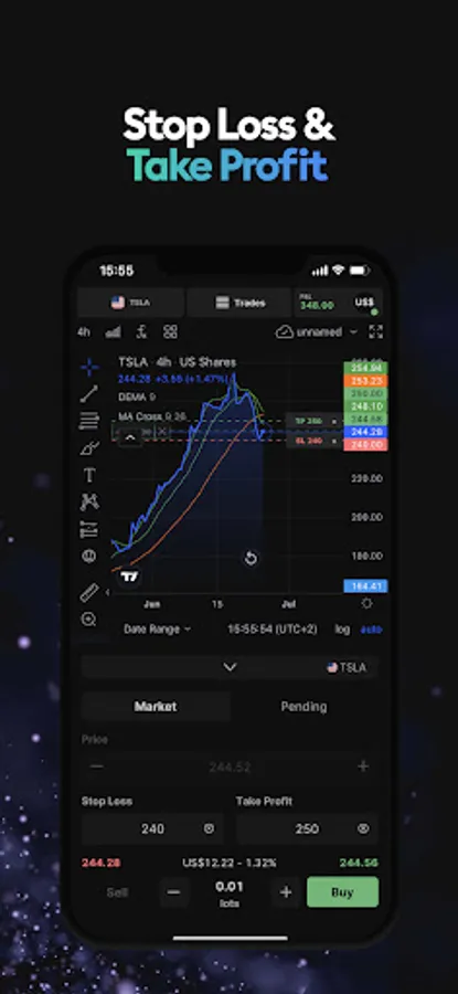 Set your stop-loss & take-profit right on the chart along with pending orders.