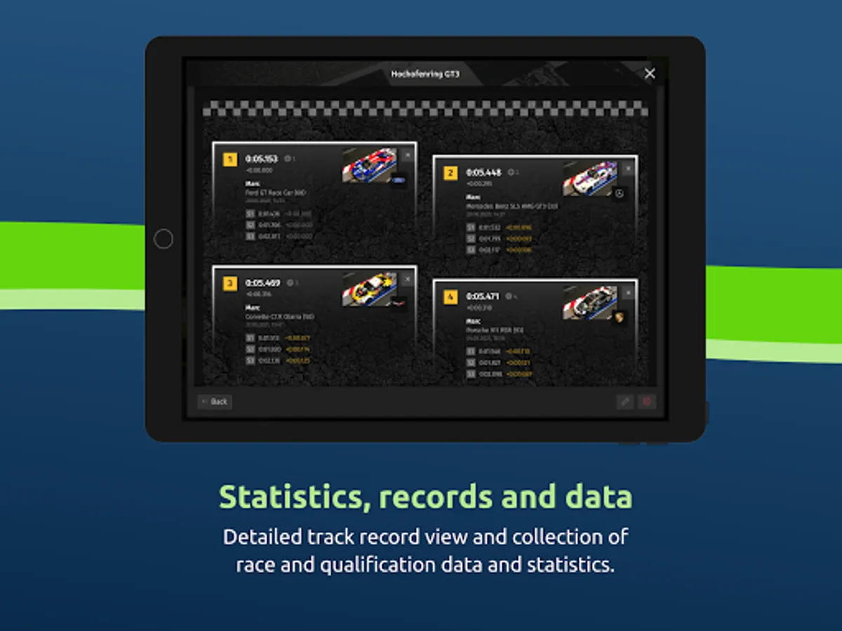 * Gathering of extensive statistical data with all driven laps, leader changes and pitstops in races and qualifyings.