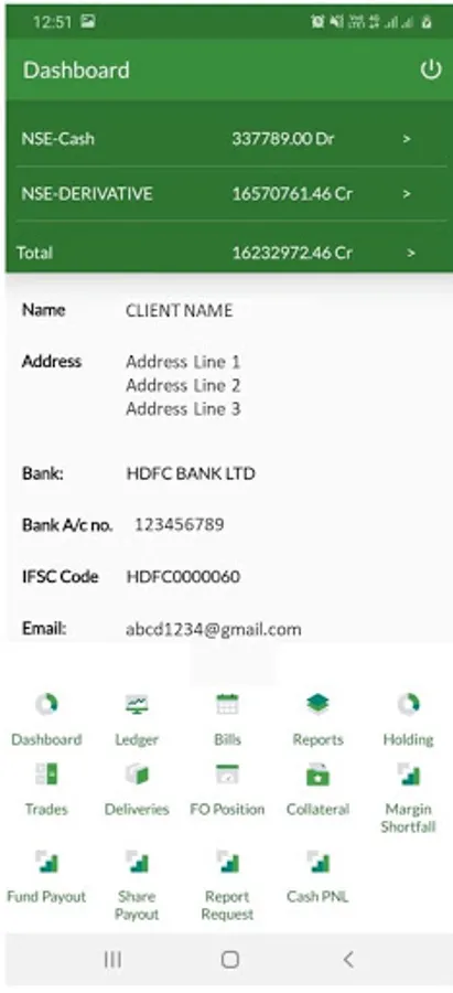 The application enables registered clients to connect to the Back office system and track various reports in Equity, Derivatives, Commodities and Currency markets plus other features.